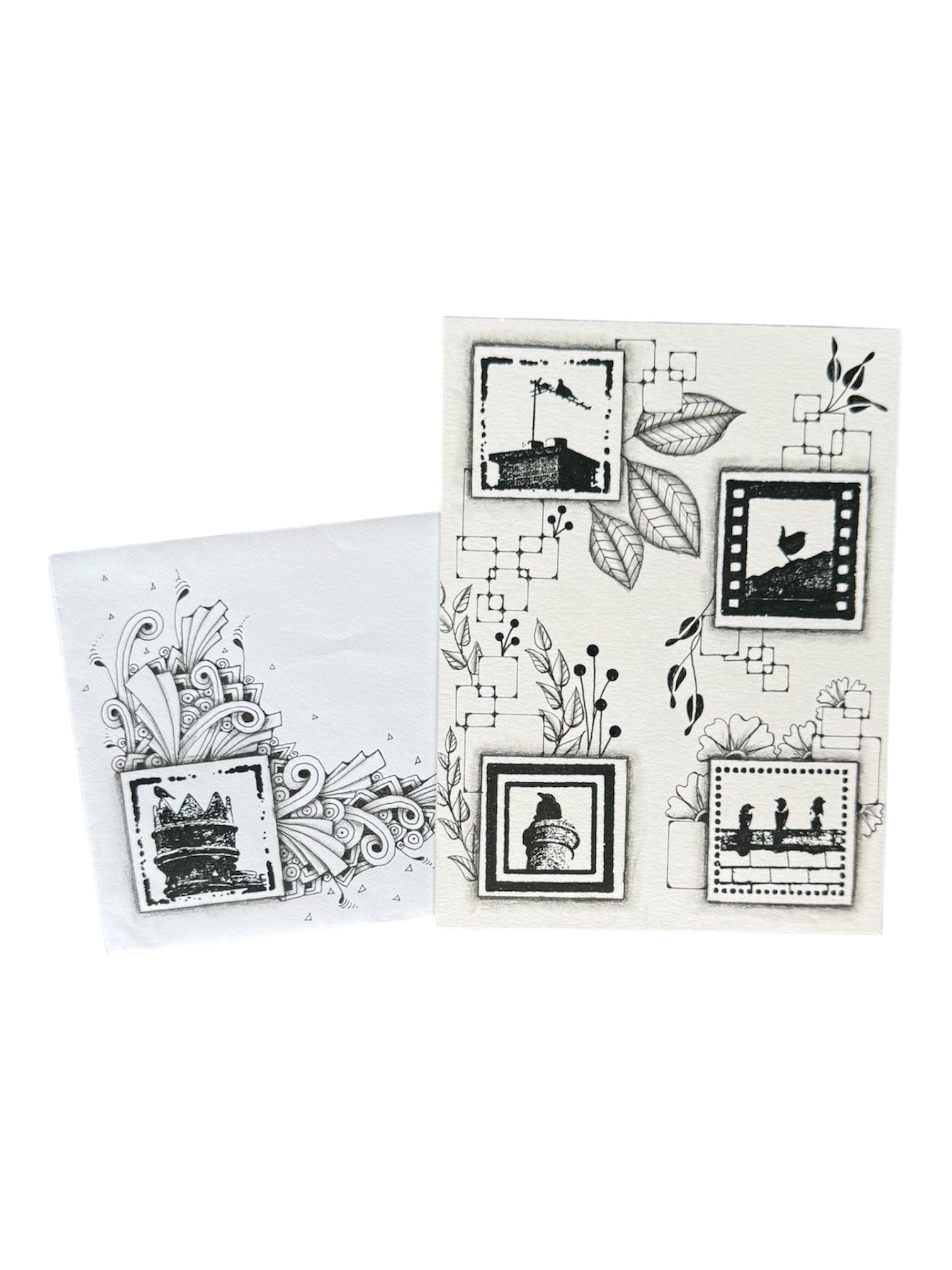 Hand Drawn Arty A6 Stamps all original designs by Janice Phillips