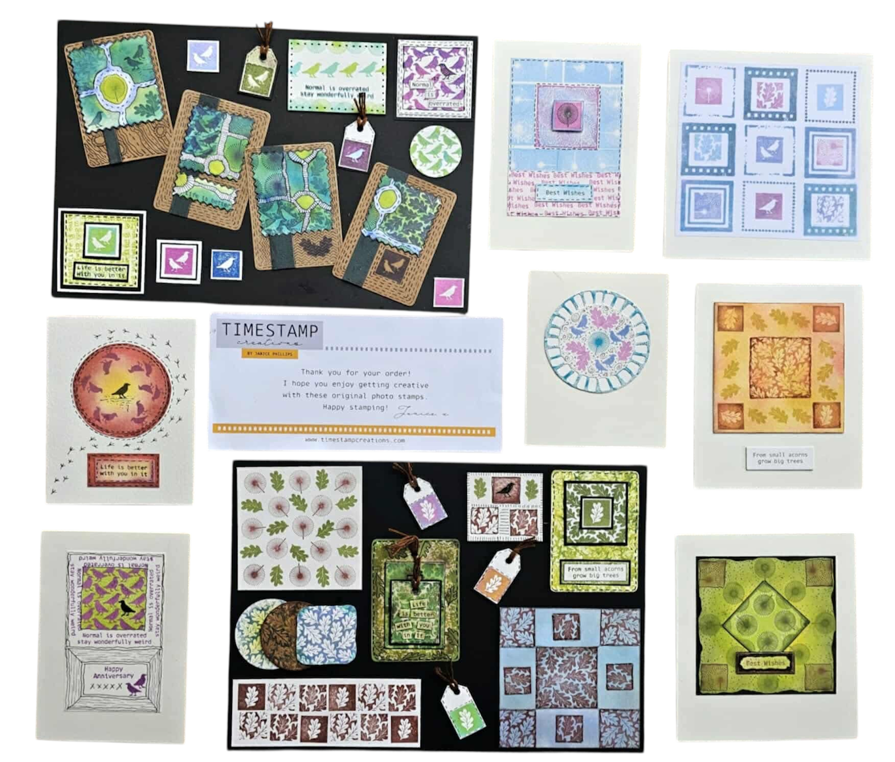 Nature Inspired A6 Stamp sets original designs by Janice Phillips